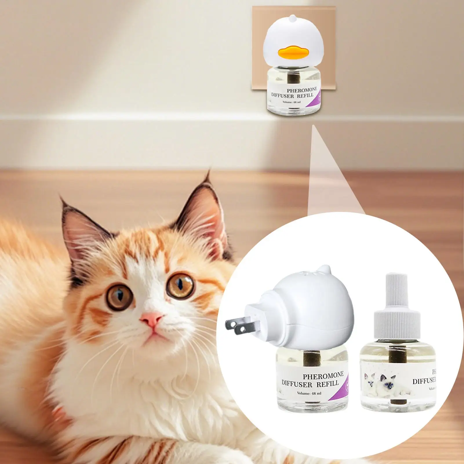 Create a calm and comforting environment for your feline companion with this cat calming pheromone diffuser. Designed to release soothing pheromones that mimic natural calming signals, it helps reduce common stress-related behaviors such as scratching, hiding, excessive meowing, and territorial marking. Simply plug it into your wall outlet to promote a more relaxed and balanced atmosphere throughout your home.