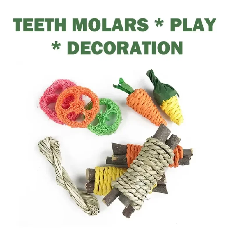 Keep your hamster or rabbit active and entertained with this colorful chew and puzzle toy set. Designed for teeth grinding and mental stimulation, it encourages natural foraging, problem-solving, and play. The weaving design allows hiding small treats, making it a fun, interactive experience while promoting healthy teeth and reducing boredom. Perfect for small animals, this set provides engaging enrichment, exercise, and stress relief for your furry friends.